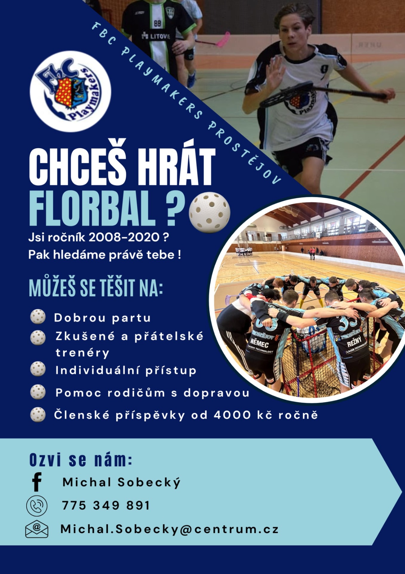 - Tělocvična Komenského 4, Pv úterý 17.00 vede: Michal Sobecký